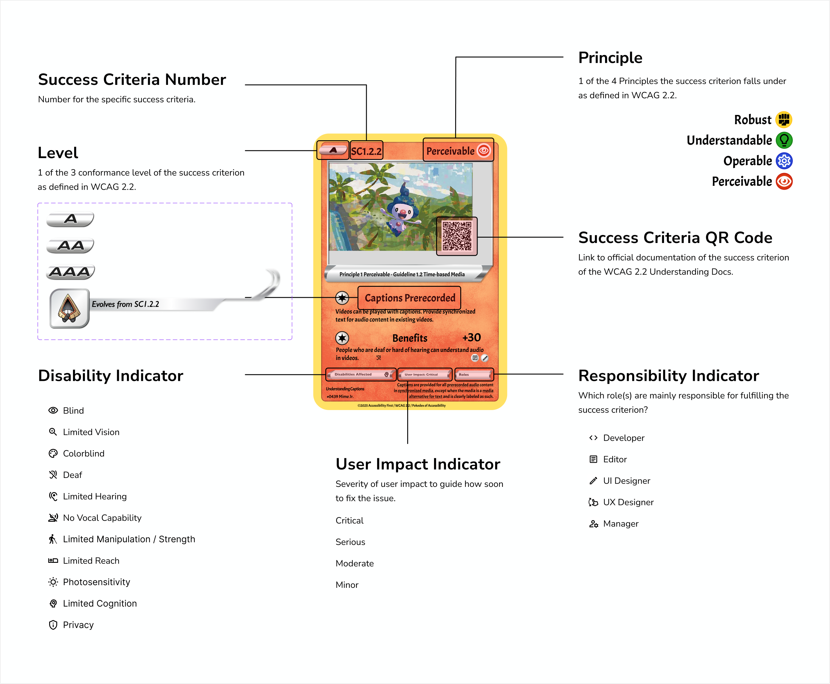 Bi-Weekly Expedition: Every other week, you’ll receive one brand-new Pokémon Card featuring a single WCAG Success Criterion (SC) - and a Pokémon on top of it.